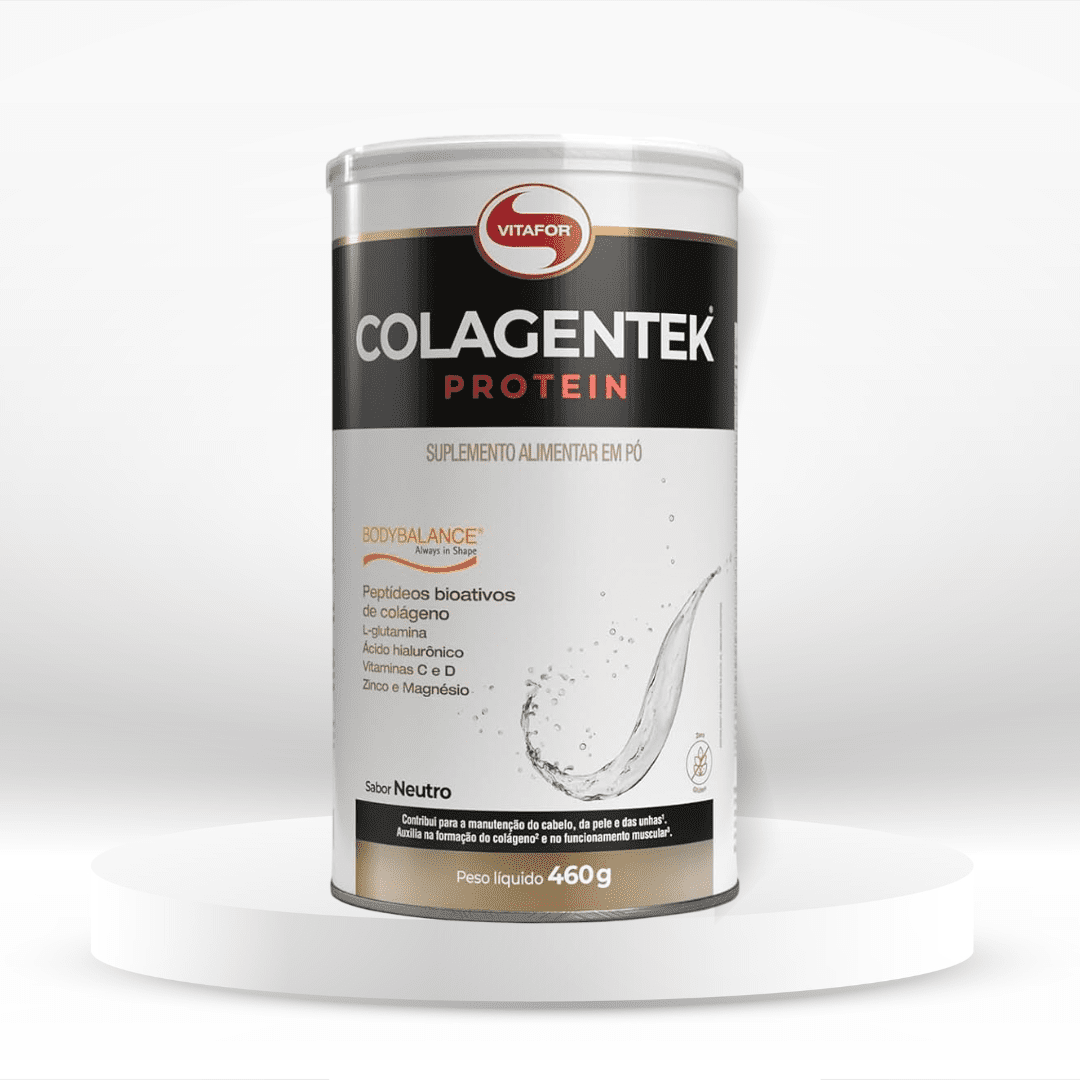 COLAGENTEK® PROTEIN da Vitafor é um suplemento alimentar em pó com a tecnologia BODYBALANCE®, que combina colágeno hidrolisado isolado com glutamina, ácido hialurônico, vitaminas C e D, magnésio e zinco. Sua fórmula oferece suporte à saúde muscular, à firmeza da pele, às articulações e ao sistema imunológico.