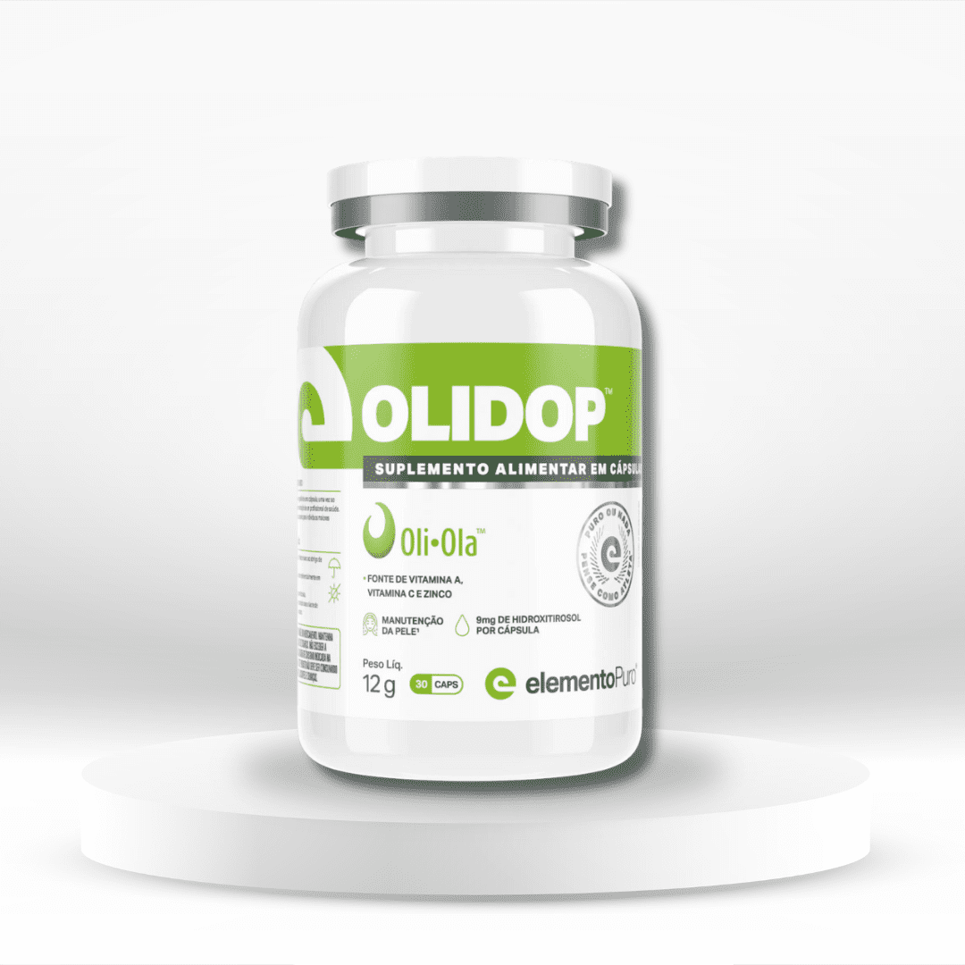 OLIDOP é um suplemento alimentar formulado com extrato natural do fruto da oliveira, enriquecido com vitaminas A e C, zinco e padronizado em 5% de hidroxitirosol — um poderoso antioxidante. Uma adição eficaz e natural à sua rotina de cuidados com a pele.